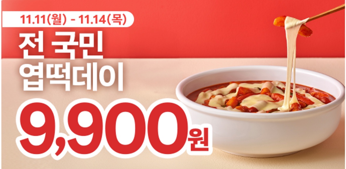네, 실화 맞아요! 11월 11일부터 14일까지 단 4일 동안 엽기떡볶이가 9,900원이라는 파격적인 가격에 판매된다고 하네요. 요즘 물가가 많이 올라서 평소에는 엽떡 한 그릇 먹으려면 15,000원 정도는 기본으로 준비해야 했는데, 이번 기회에 정말 저렴하게 즐길 수 있게 됐어요!