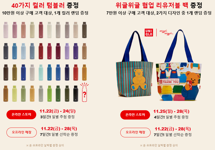 - 오프라인 매장: 11.22(금)-28(목) / 일별 선착순